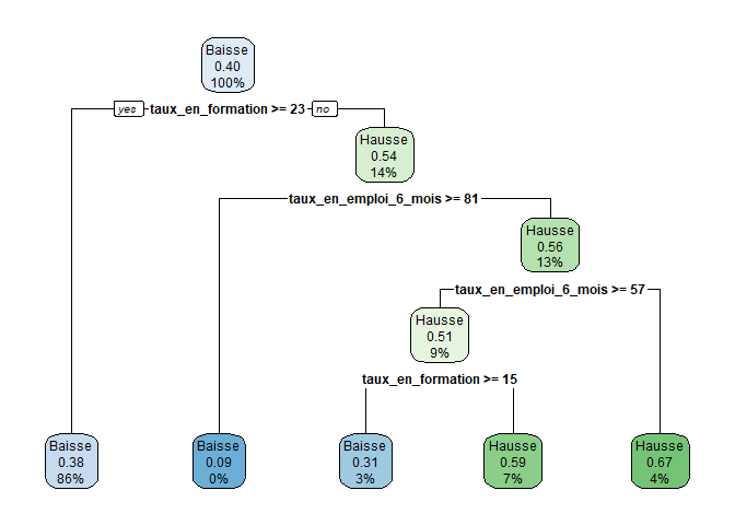 Nous avons testé une méthode de partitionnement récursif pour déterminer des seuils discriminants pour la hausse du nombre de demandes de rendez-vous pour 1000 visites.